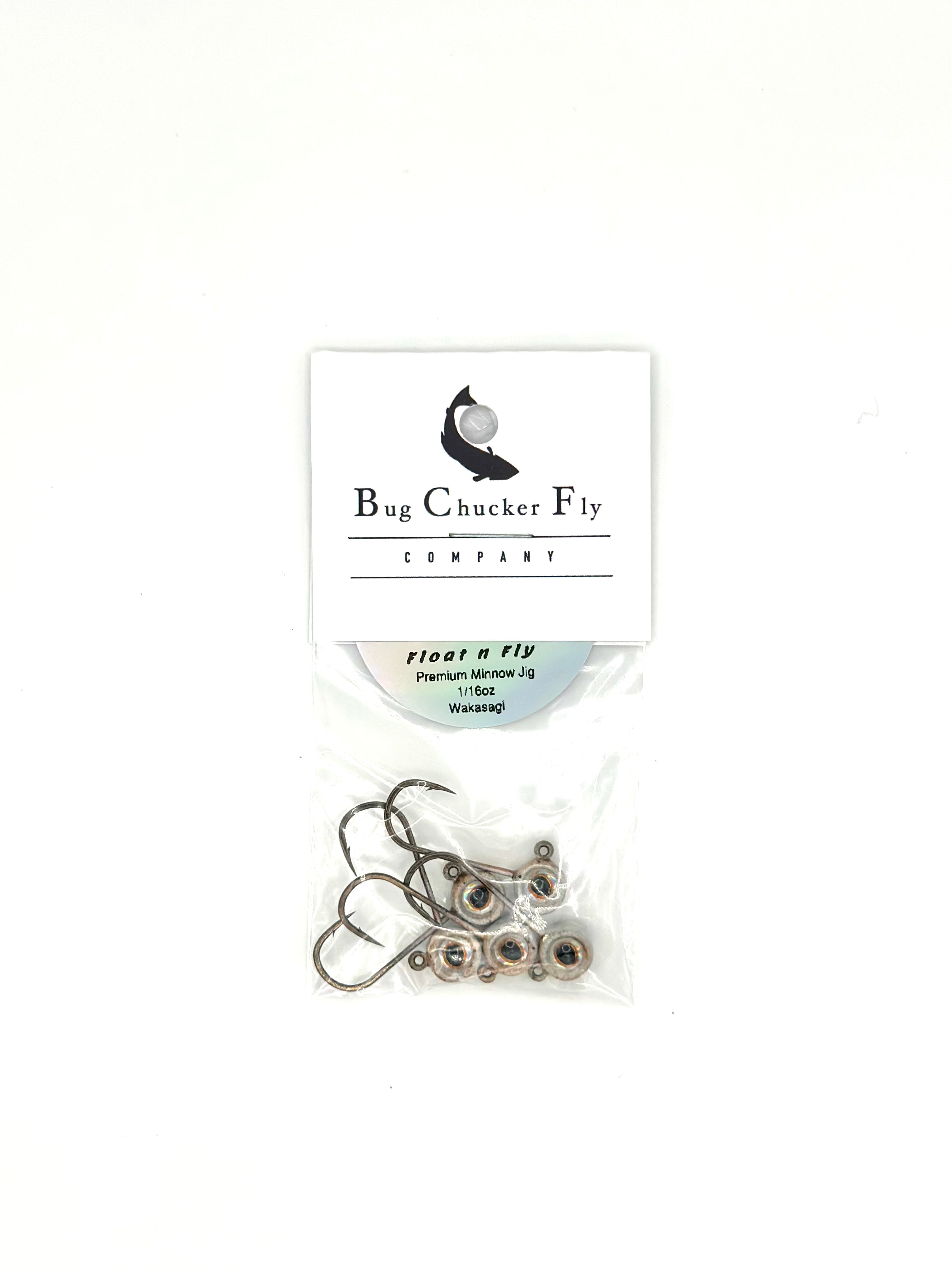 These premium jig heads come come ready to tie your favorite float n fly pattern. These jigs are custom painted and come with eyes glued. The pill design head keeps these jig heads balanced as they suspend under an indicator. The uses are endless for these painted jig heads but we take care of the customized paint and glued eyes so your patterns come out great. Take your patterns to a more detailed professional looking level. Each package contains 5 jig heads per package. 1/32oz jig with #6 hook. Baby Bass Olive Color Scheme.